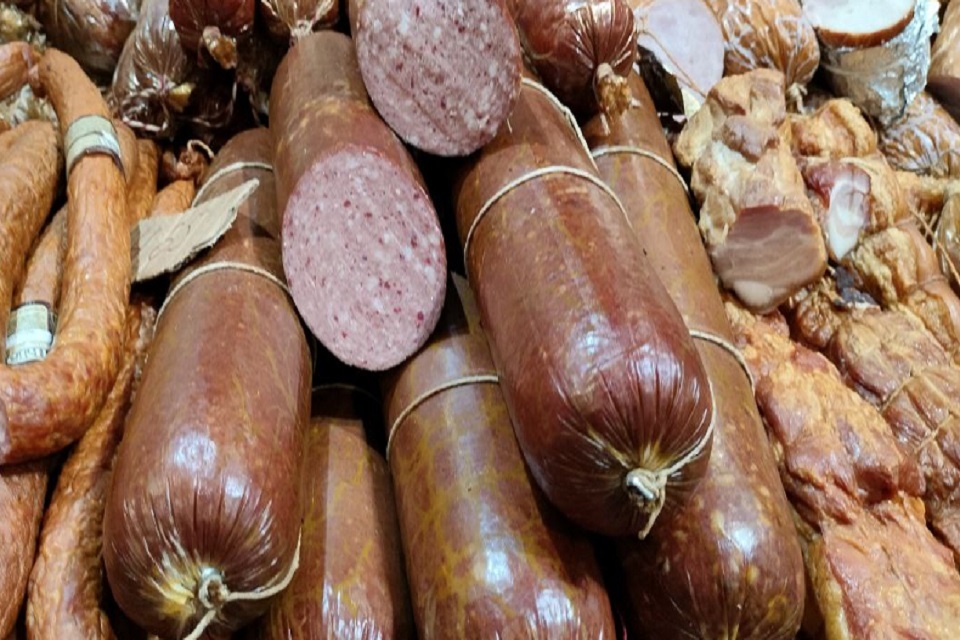 Всего комбинат выпускает ассортимент из 80 наименований колбас и деликатесов. В прошлом году комбинат увеличил мощности сырокопченого отделения и сервировочной нарезки сырокопченых колбас.